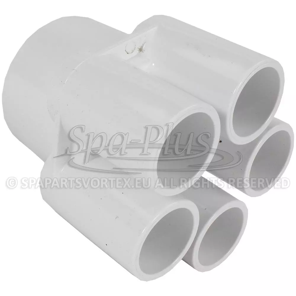 Con una longitud total de 100 mm y una profundidad de 90 mm, este colector ofrece una solución duradera y versátil para sistemas de plomería en spas, piscinas y otras instalaciones de agua.