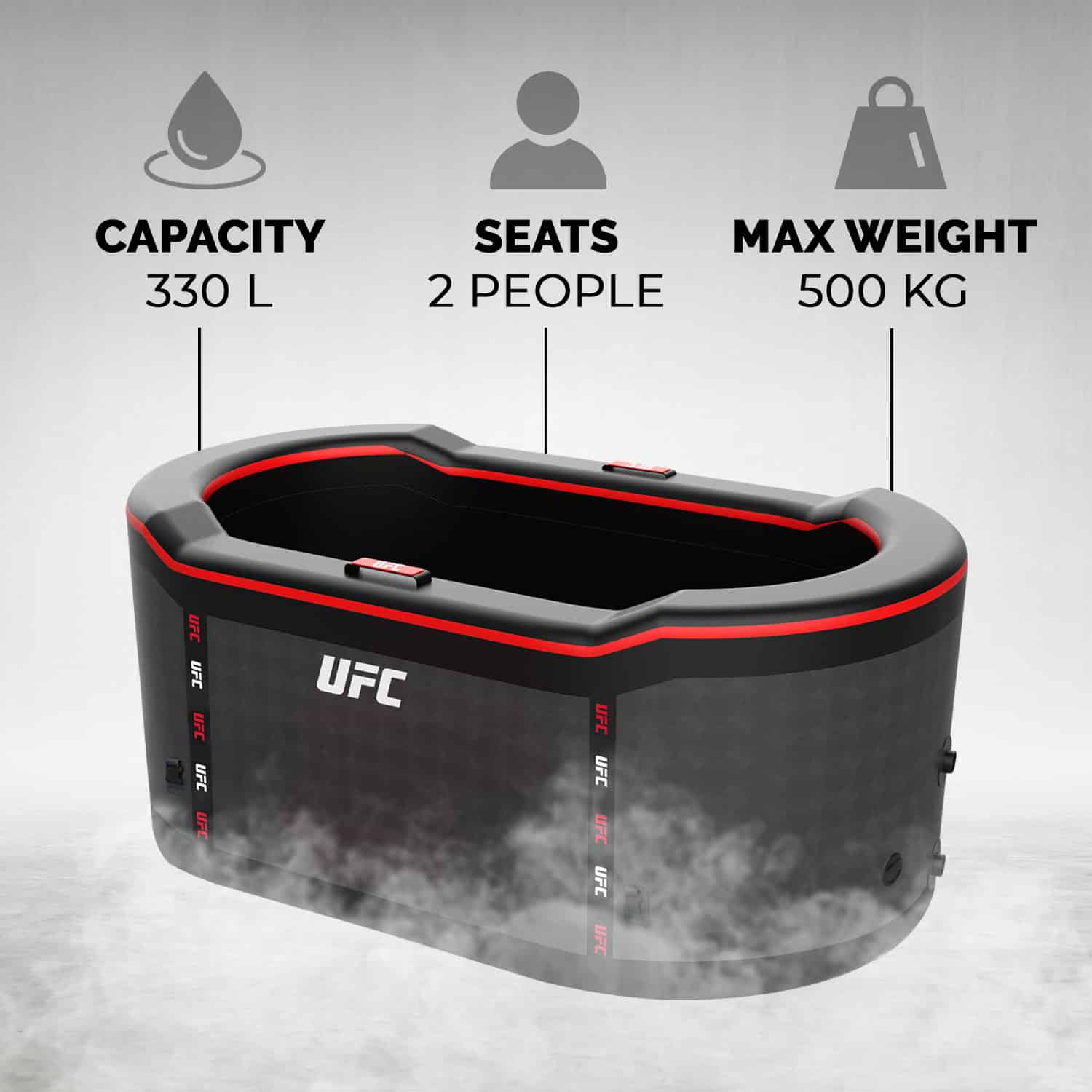 Netspa UFC IceBath Duo con tecnología Drop-Stitch Optimiza tu recuperación con el Netspa UFC IceBath Duo. El Netspa UFC IceBath Duo es una piscina revolucionaria diseñada específicamente para atletas y entusiastas del deporte que desean maximizar su recuperación. Fabricada con materiales de alta calidad, garantiza una inmersión estable y un aislamiento térmico excepcional para mantener la temperatura ideal para la terapia de frío. Gracias a su tecnología Drop-Stitch, el Netspa UFC IceBath Duo es resistente y ligero, lo que lo hace rápido de instalar y fácil de transportar. El sistema de inflado de alta presión proporciona máxima estabilidad una vez inflado, garantizando una experiencia óptima de baño en agua fría para una recuperación máxima. El Netspa UFC IceBath Duo es compatible con cubitos de hielo para un enfriamiento rápido, pero también se puede usar con un enfriador, suministrado con un kit de conexión. El enfriador enfría el agua a 3 °C, lo que permite un control preciso de la temperatura sin tener que comprar bolsas de hielo para cada uso. Gracias a la tecnología Drop-Stitch, tu Netspa UFC IceBath Duo se prepara en menos de 5 minutos para una sesión de terapia de frío que refresca cuerpo y mente tras un entrenamiento intenso. Una colaboración excepcional con la UFC. El Netspa UFC IceBath Duo Edition es un testimonio de la alianza única entre Netspa, líder en spas y equipos de bienestar, y la UFC, líder mundial en deportes de combate. Esta exclusiva alianza representa valores compartidos de rendimiento, resiliencia e innovación. Gracias a esta colaboración, Netspa ha diseñado un producto que satisface las necesidades tanto de atletas como de aficionados, combinando tecnología de vanguardia con el diseño icónico de la UFC. Una verdadera celebración del esfuerzo y el bienestar, a la altura de los mejores del mundo. Un baño de hielo efectivo al instante. Transforma tu recuperación con el Netspa UFC IceBath Duo, un producto de nueva generación especialmente diseñado para atletas. Disfruta de un baño de hielo rápido y óptimo para una recuperación acelerada después de cada entrenamiento o competición.