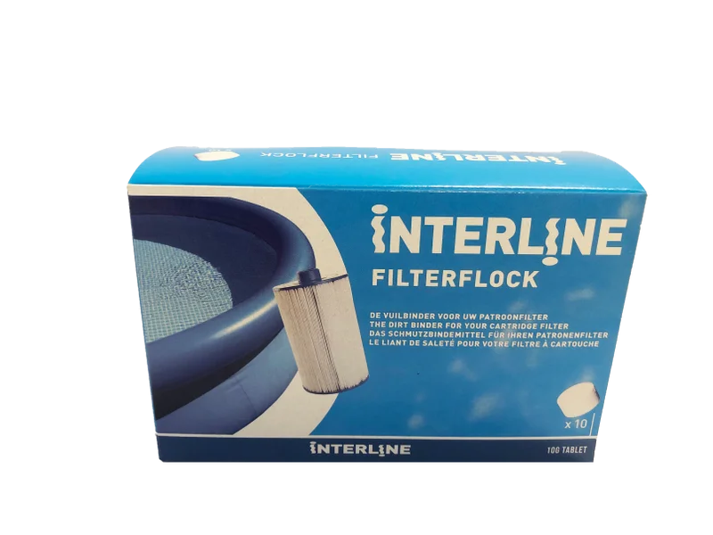 ¿Quiere agua cristalina en su piscina o spa? ¡Las pastillas Interline FilterFlock son la solución para una filtración óptima! Este potente agente ayuda a unir incluso las partículas de suciedad más pequeñas, para que el filtro las capture y elimine mejor.